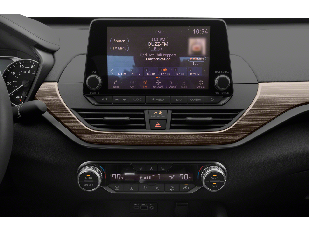 - Radio: AM/FM Audio System -inc: Radio Data System, MP3, aux-in, 6 speakers, NissanConnect featuring Apple CarPlay, Android Auto, 8" color display w/multi-touch control, SiriusXM satellite radio w/advanced audio features, 2 front illuminated USB connection ports (1 Type-A, 1 Type-C) for iPod interface and other compatible devices, Bluetooth hands-free phone system, streaming audio via Bluetooth, Hands-free text messaging assistant, Siri Eyes Free/Google Assistant voice recognition and Over-the-air (OTA) updating for headunit firmware via a Wi-Fi WPA2 connection